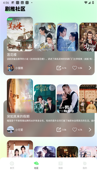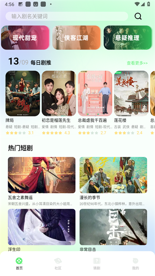 内置的推剧社区是红火app的一大亮点,用户可以在这里分享自己的观影心得,发现其他网友推荐的优质短剧。社区内设有热门话题讨论区、剧评专区等板块,支持点赞、评论和收藏功能,让追剧不再是一个人的孤单体验。