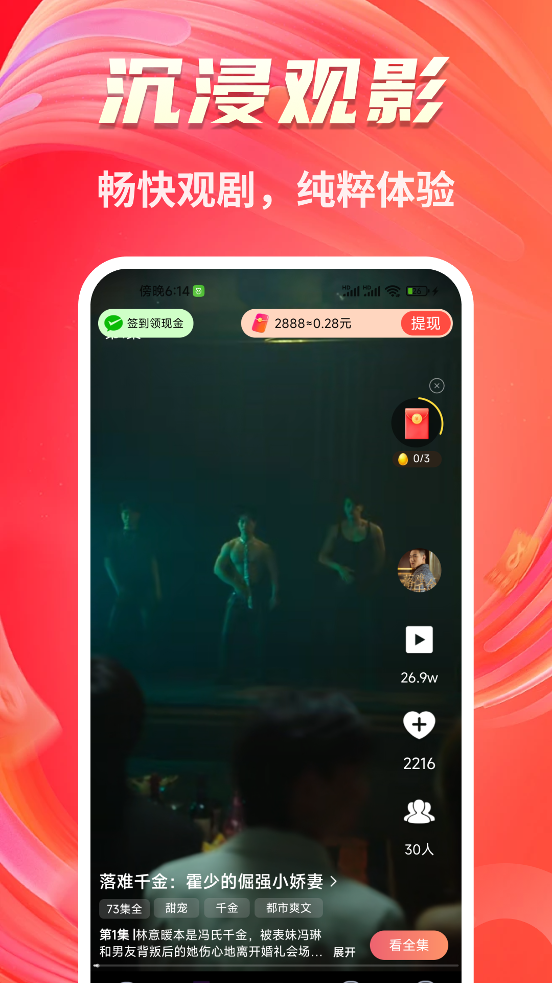 【海量好剧】在这里,你可以尽情探索一个丰富多彩的短剧世界。我们汇集了海量热门短剧资源,从古装仙侠的唯美浪漫,到青春校园的活力四射,再到悬疑惊悚的扣人心弦,各种题材应有尽有。无论你是喜欢轻松搞笑的都市生活剧,还是偏爱烧脑刺激的悬疑推理剧,都能在这里找到心仪之作。我们持续更新剧库,确保你总能发现新鲜有趣的内容,让你的追剧时光永不枯燥。