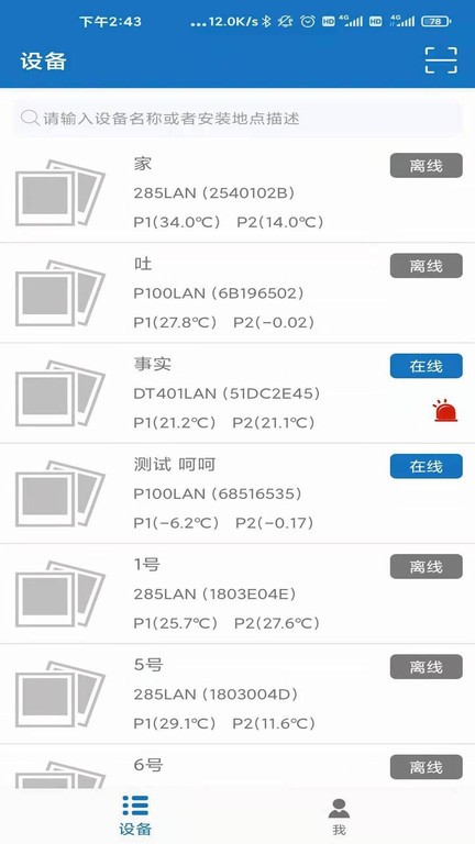 设备搜索,在搜索设备之中凭借设备名称或安装地点可以搜索设备,支持模糊查询和高级筛选功能,快速定位目标设备;