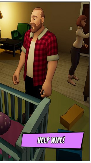 愤怒老爹是一款独具特色的休闲模拟游戏,玩家将完全代入父亲的第一人称视角。游戏画面采用精美的3D卡通渲染技术,场景细节丰富,从温馨的客厅到热闹的足球场,每个场景都栩栩如生。游戏的核心玩法在于情绪管理,玩家需要在不发怒的情况下完成各种日常任务,比如辅导孩子作业、洗碗、遛狗等。这些看似简单的任务往往会因为各种意外状况变得极具挑战性,比如孩子突然打翻牛奶,或者邻居突然来访打扰你看球。游戏通过这种轻松幽默的方式,让玩家体验到为人父母的酸甜苦辣。
