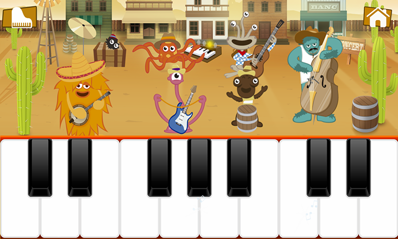 吉他:炫丽的舞台场景中,小熊猫吉他手会带领孩子学习各种弹奏技巧。点击舞台上的不同装饰物,会触发特殊的音效和动画效果,让学习过程充满惊喜。
