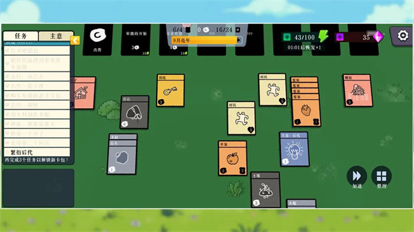 提供多种卡片供玩家体验,让他们体验不同卡片带来的乐趣以及不同物品和图案的外观。卡片种类超过200种,包括资源卡、建筑卡、人物卡等,每张卡片都经过精心设计。有各种各样的任务等待玩家完成,他们可以破解并完成各种各样的工作,面对不同任务带来的挑战性困难。任务系统包含主线剧情和随机事件,确保每次游戏都有新鲜感。提供了一个非常大的地图场景,玩家可以使用不同的卡片开始游戏,体验文明的无限发展。地图会随着游戏进度逐步解锁,隐藏区域等待玩家探索发现。游戏非常直观,在策略上充满了惊喜和挑战。简单易上手的操作背后是深度的策略系统,需要玩家合理规划资源分配和发展路线。
