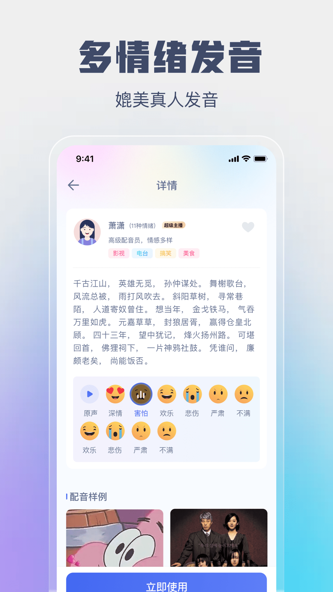 多情感发音:支持多种情感语调的语音合成,能够模拟真实人类的情感表达,发音效果媲美专业配音演员。