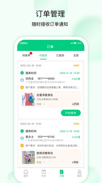智能定位系统可实时更新服务者位置信息,确保订单分配的精准度,让服务者优先获取周边3公里内的订单,有效减少通勤时间成本。完善的信用评价机制记录每位服务者的服务质量、服务态度等关键指标,表现优异者可获得平台推荐和优先派单权益。全渠道订单整合能力让服务者不再为订单来源发愁,平台汇聚了来自各大主流平台的订单资源,确保订单量充足稳定。