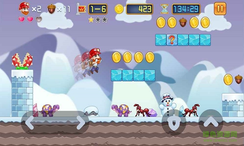 【关卡】本作包含8个独特的世界,共计64个精心设计的关卡,保证让玩家玩得过瘾。每个世界都有其独特的主题和风格:阳光森林充满生机,冰天雪地考验操作,沙漠地带暗藏玄机,矿洞区域危机四伏,诡异森林神秘莫测,冰洞窟寒气逼人,水下世界美轮美奂,最终城堡气势恢宏。不同场景还配备了专属的物理引擎特效,比如结冰地面会打滑,水下需要控制浮力等,大大增加了游戏的真实感和趣味性。