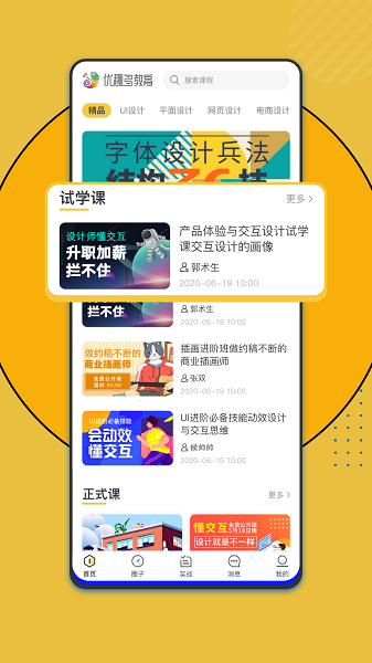 亲和的圈子体系:平台创新的学习社区功能,让学员可以分享作品、互相批改作业、解答疑问,在轻松愉快的氛围中共同进步。