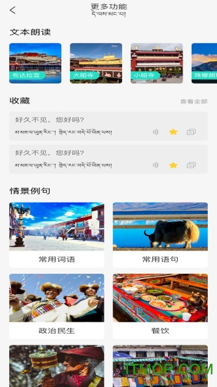 实用情景例句:内置10大类生活场景常用例句,涵盖餐饮、住宿、交通等各个方面,让用户在藏区旅行时沟通无障碍。