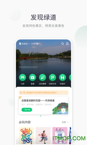 天府绿道是一款专为游客设计的智能旅游服务平台,它将成都丰富的公园资源与数字科技完美结合,为用户带来全新的游玩体验。通过这款应用,游客可以轻松获取景区资讯、规划最佳路线、享受语音导览服务,还能在遇到问题时快速联系工作人员。无论是独自探索还是结伴同游,天府绿道都能为您提供个性化的游玩建议,让每一次出行都充满乐趣。目前该应用已覆盖锦城湖公园、桂溪生态公园等多个知名景点,未来还将持续扩展服务范围,让您一部手机畅游天府绿道。