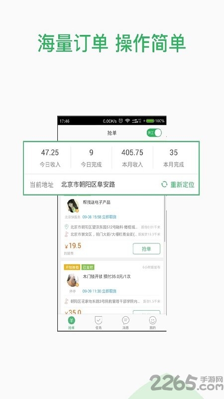 帮助2265骑手们快速的掌握更多的订单信息;实时更新订单状态和配送路线,让配送过程更加顺畅