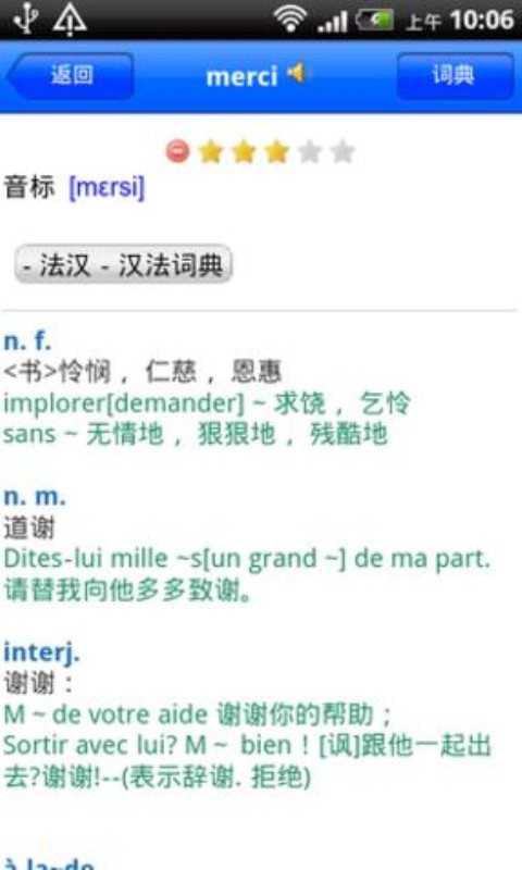 应用汇集了2000+日常用语和3000+常用法语词汇,按照生活场景分类整理,方便用户快速查找和学习。每个词汇和短语都配有详细的用法说明和例句,帮助用户理解在不同语境下的正确使用方式。