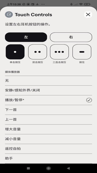 全面自定义耳塞触控操作,支持设置单击、双击、长按等多种手势,满足播放控制、音量调节等多样化需求。
