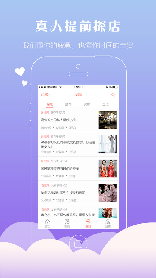 真人提前探店:我们理解筹备婚礼的辛苦,也珍惜您宝贵的时间。喜结婚礼汇app提供专业的探店服务,让您足不出户就能了解商家真实情况,节省实地考察的时间。