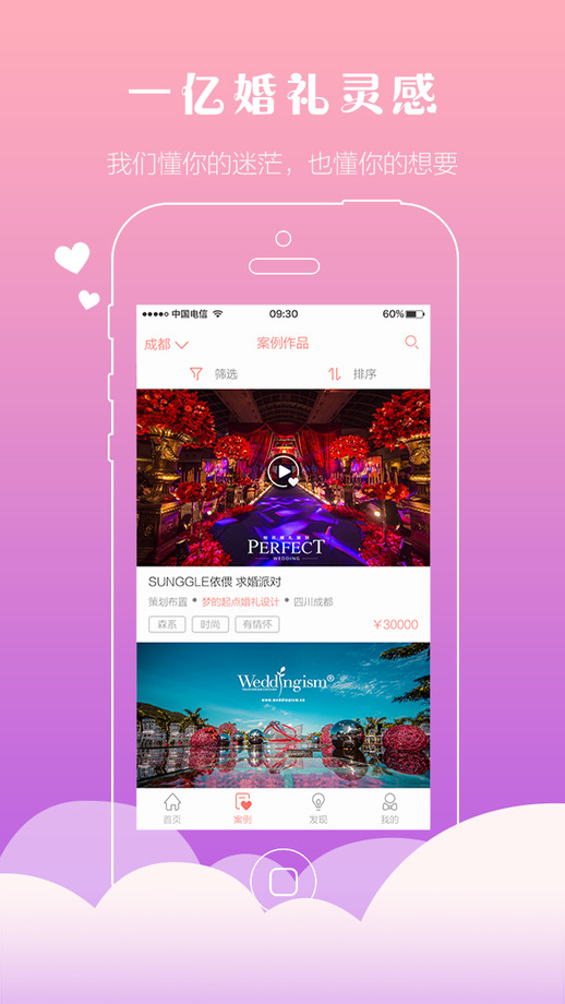一亿婚礼灵感:面对琳琅满目的婚礼方案不知如何选择?我们为您准备了海量真实婚礼案例,从传统中式到西式浪漫,从简约清新到奢华大气,总有一款能激发您的灵感。