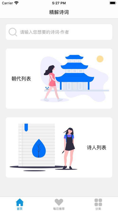 精解诗词app苹果手机版涵盖了丰富多样的诗词题材,无论你喜欢写人、写景的抒情诗,还是充满豪情的边塞诗、乐府诗,亦或是表达家国情怀的经典作品,这里都能满足你的需求。所有内容均可免费学习,无需任何付费解锁,让用户能够毫无负担地畅游在诗词的海洋中。通过系统化的学习和积累,用户可以显著提升语文学习能力,培养对古典文学的深厚兴趣。