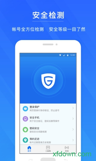帐号全方位检查安全等级一目了然,通过可视化图表直观展示安全评分