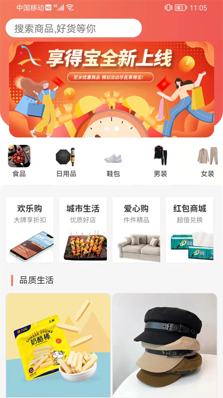 享得宝app的商品种类极其丰富,涵盖了休闲零食、家居日用、鞋品包饰、精品服装等多个品类,满足用户的一站式购物需求。平台还特别设置了多个精品购物板块,如欢乐购、优质生活、爱心购和红包商城等,为用户带来更多购物乐趣和福利。此外,享得宝还定期推出大牌折扣活动,让用户以更低的价格享受到高品质商品,真正实现“花小钱,买好货”的购物体验。