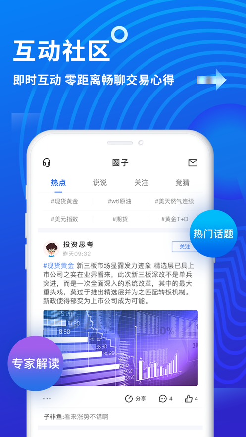 金投社区聚集了大量金融行业专家和资深投资者,他们定期分享市场观点和操作策略,用户可以通过互动交流获取专业建议,提升投资水平。