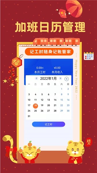 【日历视图显示】- 创新的日历式界面设计,支持快速记录正常工时和加班工时,操作简单直观。