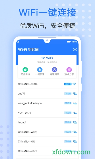 wifi钥匙圈是一款功能强大的手机网络工具,它能智能识别周边可用wifi热点,无需繁琐的密码输入即可一键连接,让您随时随地享受免费网络。这款应用不仅能帮您快速连网,还具备网络优化、信号增强、实时测速等多项实用功能,堪称移动上网的得力助手。无论是外出旅游、商务办公还是日常娱乐,wifi钥匙圈都能为您提供稳定流畅的网络体验,让您告别流量不足的困扰。快来下载体验这款智能网络神器吧!