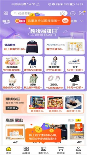 进入到软件界面用户就可以随意使用。平台界面设计简洁明了,新手也能快速上手。首页会智能推荐热门商品和促销活动,购物车和订单管理功能一目了然,方便用户随时查看购物进度和收益情况。
