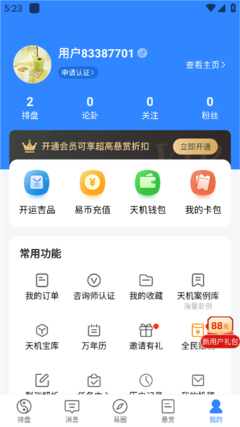 认证功能支持咨询师认证,用户可以通过参与悬赏任务获取奖励。天机六爻排盘的论卦系统严谨科学,确保每个断语都有反馈,为用户提供高质量的占卜服务。