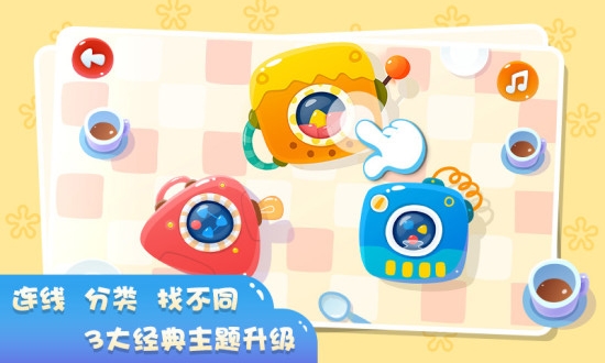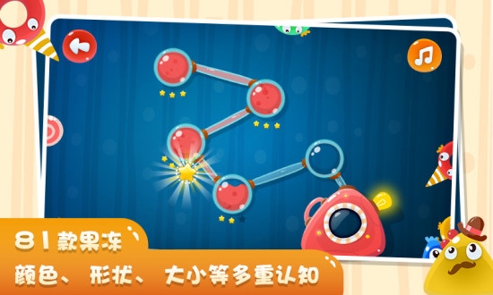 基于连线、找不同、分类等经典的游戏玩法。这些传统玩法经过创新设计,更适合低龄儿童操作,既保留了游戏趣味性又具有教育意义。在简单的操作中,培养孩子的多重认知能力与辨识能力;通过触摸、拖拽等直观操作方式,让孩子在玩耍中不知不觉提升手眼协调能力。81款果冻的细微变动,更可以训练孩子敏锐地判断外在事物的微妙变化;游戏中设置了丰富的细节变化,能够有效锻炼孩子的观察力和注意力集中能力。