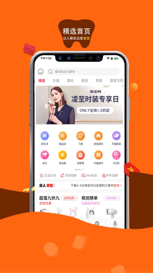商品:平台所有商品均经过严格筛选,采用6大质检程序层层把关,从源头确保品质。专业买手团队每日精选爆款好物,让您享受购物乐趣的同时无需担心质量问题。价格:我们的比价团队24小时监控全网价格波动,确保提供的优惠力度远超团购价。特别设立"限时秒杀"专区,淘宝、天猫、聚划算等平台的特价商品一网打尽。专业:平台整合了"九块九包邮""超值购""品牌特卖"等多样化购物场景,智能推荐系统能根据您的购物习惯精准匹配心仪商品。