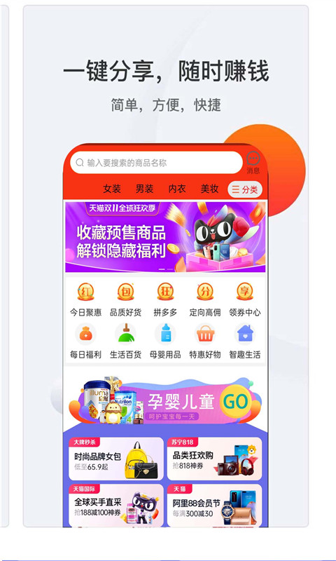 品类丰富人工精选百万淘宝天猫优质商品,只要有券,在购省钱你都能找到!涵盖服饰、美妆、数码、家居等全品类商品,满足不同用户的多样化购物需求。