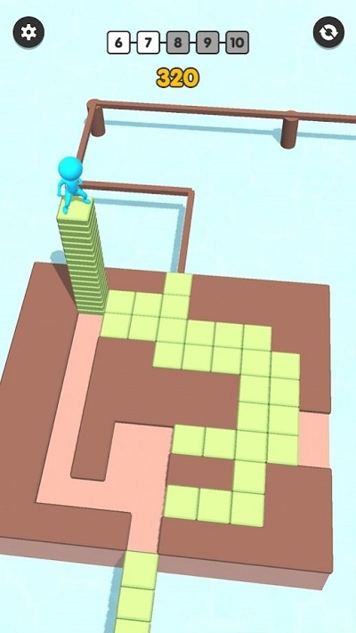尽可能一次性不重复的将地面铺设完整,使用更少的砖块走出迷宫,仔细观察摸索最佳通关线路,培养玩家的资源管理意识。