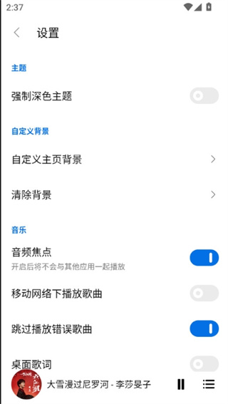 进入设置页面后,向下滚动找到"音乐"分类选项。在这个分类下,用户可以找到"音质选择"功能,这里就是调整音乐播放质量的核心设置区域。