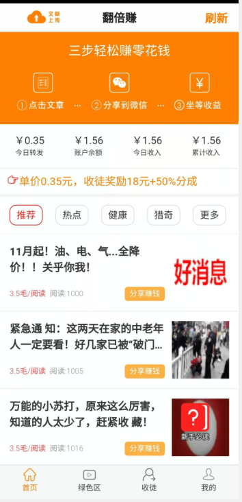 翻倍赚app作为金蝉网旗下2020年2月20日正式推出的创新平台,为用户打造了一个全新的内容变现生态。新用户注册即可获得1元新人红包,点击阅读文章单价高达0.35元,首次提现门槛仅需5元且支持零钱秒到账。后续提现额度提升至10元,微信提现同样即时到账。平台采用先进的智能推荐算法,确保每位用户都能看到符合个人兴趣的高质量内容,让阅读赚钱变得更加轻松愉快。