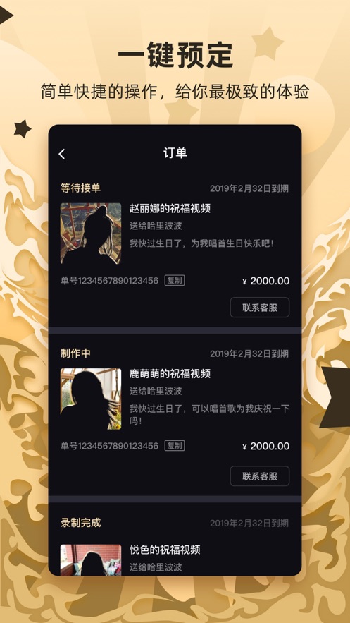 【便捷操作流程】我们简化了预定流程,用户只需几步简单操作即可完成订单。从选择明星、确定内容到最终接收视频,整个过程流畅高效,让你享受最便捷的服务体验。