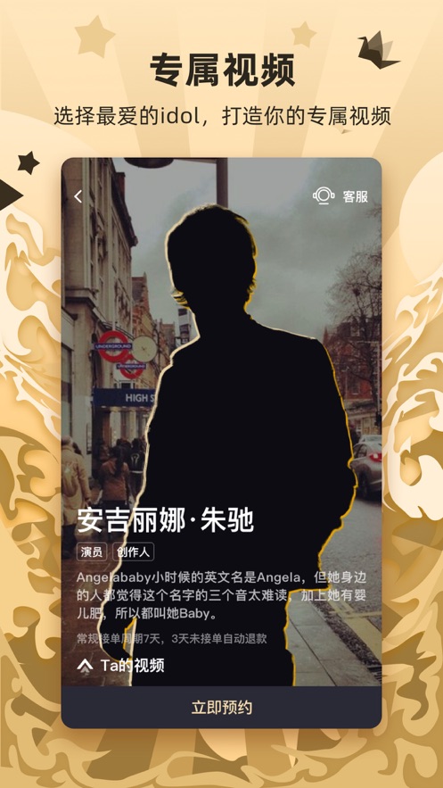 【专属定制服务】平台提供海量明星资源,用户可以根据个人喜好选择最喜爱的偶像,定制完全个性化的祝福视频内容。每个视频都是独一无二的,只为满足你的特定需求。