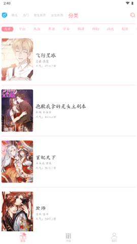 不同类型的漫画书籍资源平台上都可以看到,多个不同题材和类型都有,选择更自由;每周都会更新数百部新作,保持内容的新鲜度,让用户永远都有新漫画可看。