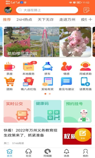 万州通是万州地区最具权威性的本地应用,它汇聚了万州同城用户最关心的各类生活信息。在这里,用户可以随时随地查看最新鲜的万州本地新闻资讯,第一时间掌握城市动态;享受超值的万州本地团购优惠,轻松省钱;分享万州特色美食探店心得,发现更多美味去处;还能查询公交线路、车辆违章、天气情况等实用信息。更重要的是,万州通还为用户搭建了一个兴趣社交平台,帮助用户快速找到志同道合的朋友圈子,让生活更加丰富多彩。无论是寻找美食、购物、娱乐,还是交友、求职、分享生活,万州通都能满足您的需求。