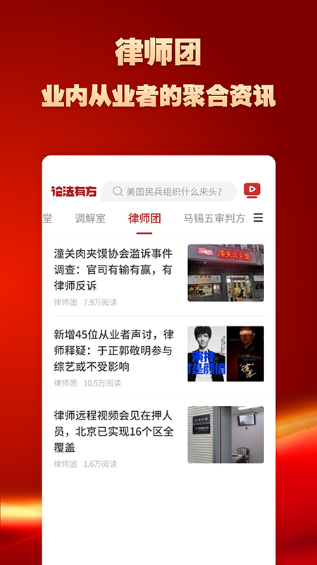 论法有方app下载,这是一款专注于法律领域的专业新闻客户端,致力于为用户提供全面、权威的法律信息服务。通过论法有方app,您可以第一时间获取最新最热的法律动态,深入了解各类法律条文解读,还能查阅丰富的法律案例资源库。无论是法律从业者还是普通民众,都能在这里找到实用的法律工具和在线咨询服务。此外,app还提供律师在线答疑、法律文书模板下载等便捷功能,让法律知识触手可及。现在就下载论法有方app,开启您的法律知识之旅。