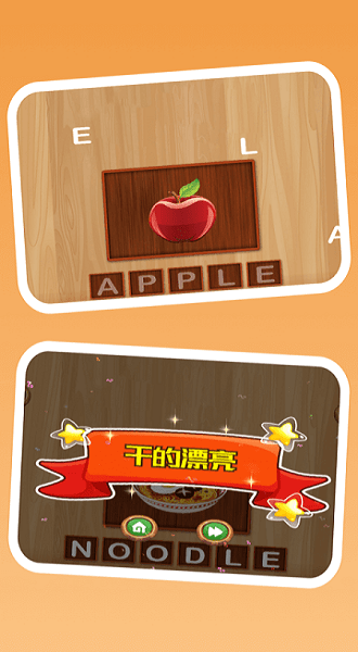 字母闯关是一款将娱乐与学习完美结合的趣味字母学习游戏。游戏包含动物单词、食物单词、日常用品单词等丰富多样的词汇类别,每个类别都配有生动形象的插画。比如在食物类别中,当玩家选择"苹果"时,屏幕上就会出现对应的英语单词字母,玩家需要将这些字母按正确顺序移动到指定位置。这种互动式的学习方式不仅能加深记忆,还能培养孩子的拼写能力。游戏还特别设计了即时反馈系统,当玩家答对时会获得鼓励性的语音和动画奖励,让学习过程充满成就感。通过这种寓教于乐的方式,孩子们可以在轻松愉快的氛围中掌握大量英语单词。
