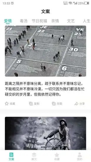 文案素材之家让你的朋友圈更加炫酷,还在担心自己的朋友圈没人点赞吗?这款专为社交达人打造的创意文案神器,拥有海量免费模板和精美素材库,覆盖各种生活场景和节日主题。无论你是想发早安问候、情感语录,还是分享生活趣事,都能在这里找到合适的文案。一键复制功能让你轻松发布高质量内容,每天都能收获大量点赞和互动,让你的朋友圈成为社交圈中的焦点。