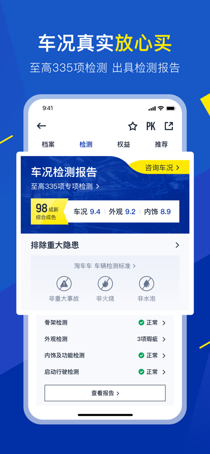 ·「车况可靠」每辆车都经过专业检测,承诺重大事故30天内包退,保障用户权益