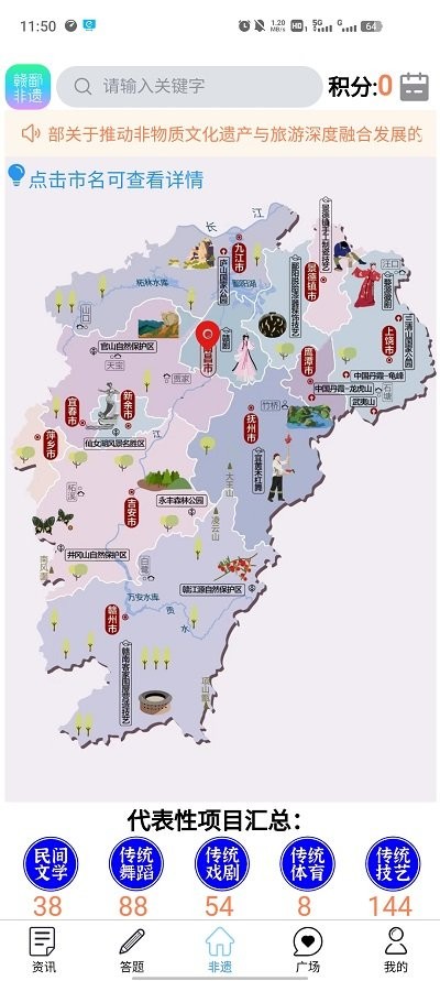 趣味知识问答,系统设计了分难度级别的知识测试,通过游戏化学习方式帮助用户巩固非遗知识,答对题目还能获得积分奖励;