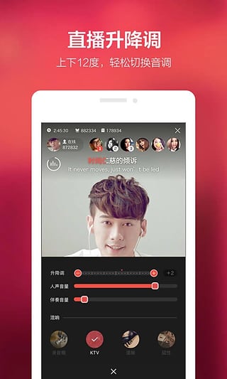 调音台---音调高了没关系,音调太低不要紧,动一动,调音台圆你所想,支持12级音高调节和8种音效模式;