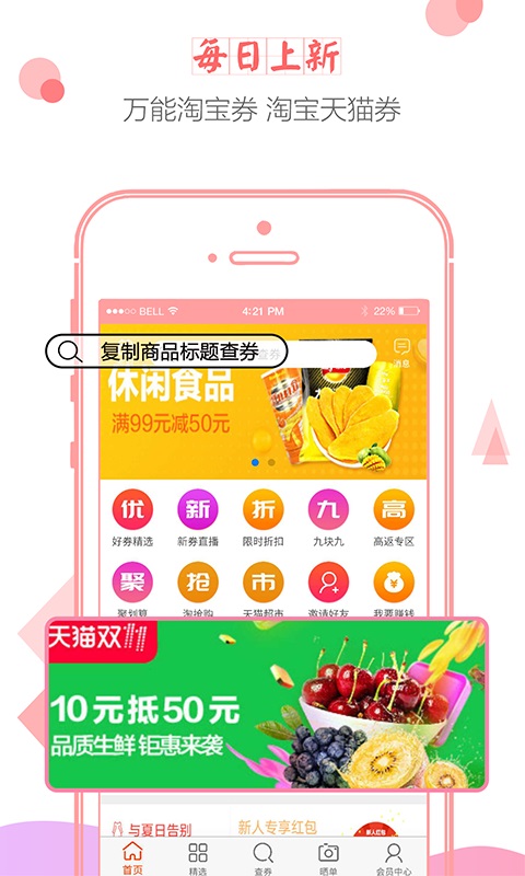 【网购领返利-单单返现】平台独创的自动返利系统,用户领券购物后即可享受返现优惠,最高可享免单福利,让每次购物都物超所值。
