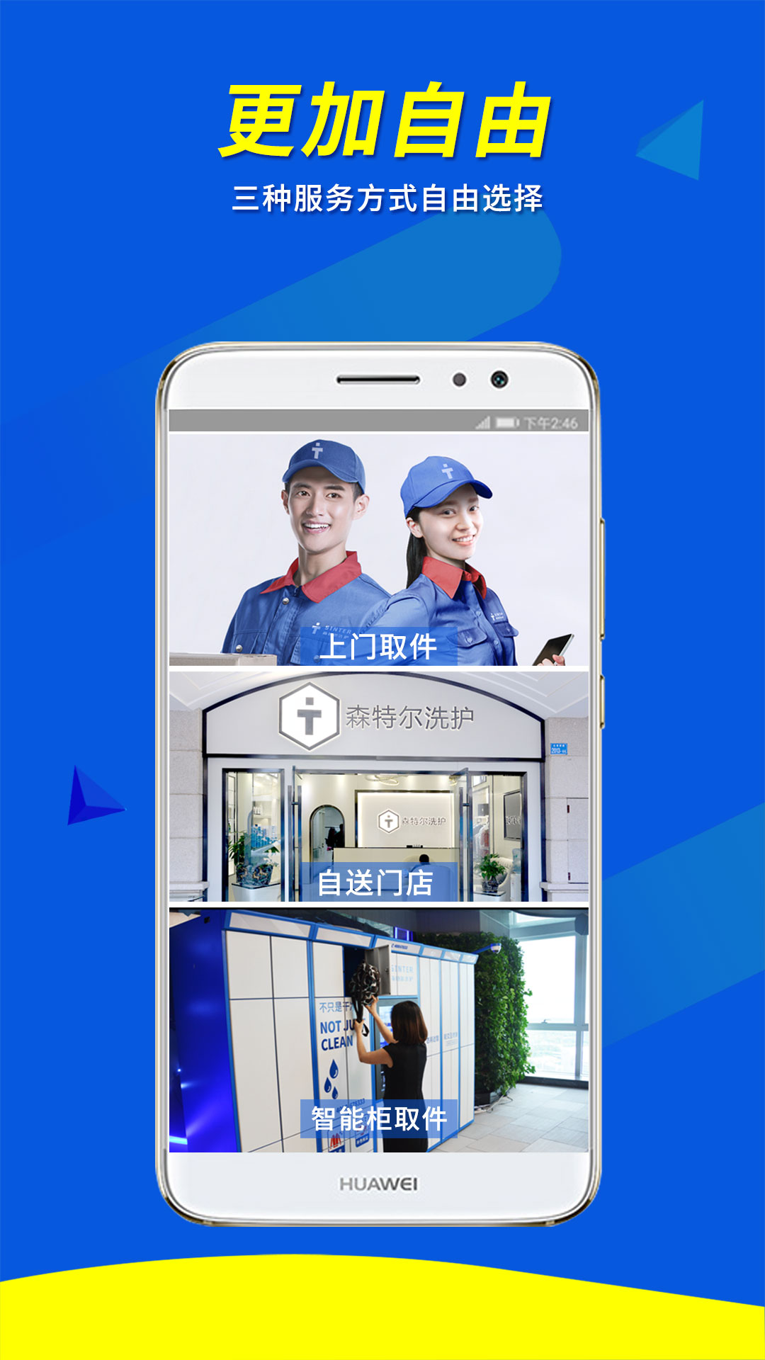 灵活选择:支持门店送取、智能柜寄存和上门收送三种服务模式,满足不同场景需求。