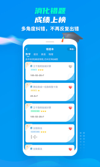 最新版本完善了课前预习、课堂互动、课后复习的完整学习闭环;新增30万+公立学校同步智能课件视频资源,全部免费开放;升级了多级知识点分类的AI智能题库系统,支持更精准的题目推荐;优化了学习进度跟踪功能,提供更详细的学习数据分析;新增错题重练模式,帮助用户巩固薄弱知识点。
