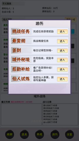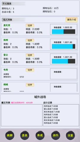 培育远古神仙,战胜异界邪魔。游戏中收录了上百位神话传说中的神仙角色,每位神仙都拥有独特的成长路线和技能体系,玩家可以自由培养心仪的神仙,组建强大的战斗阵容。