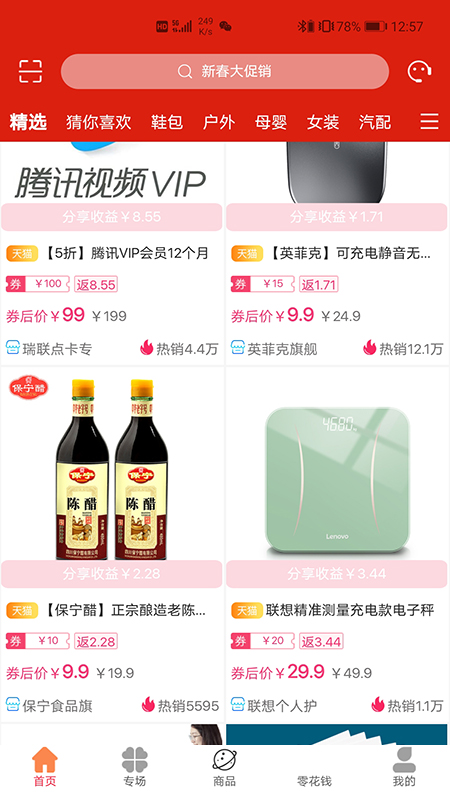 精选特惠专区:平台每天精选优质商品,提供超值低价和包邮服务,让您享受真正的实惠。特别设置每日最低价商品专区,帮您省下每一分钱。