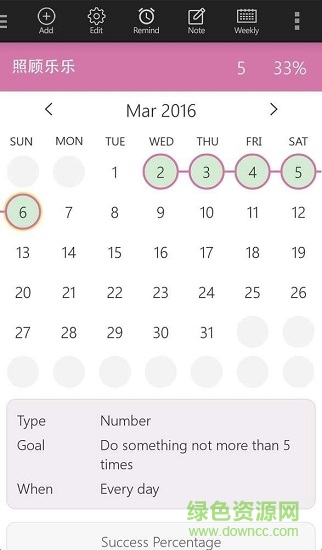 跟踪多种习惯,重复计划项目或者目标,并于日历中显示,支持周视图/月视图切换