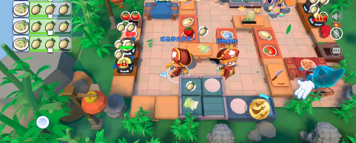最值得关注的是全新加入的"投掷"系统,这个创新机制彻底改变了游戏的玩法节奏。玩家现在可以将食材直接投递给队友,或者将成品菜肴精准地送到顾客面前。这个系统需要玩家多加练习才能熟练掌握,但一旦运用得当,将极大提升厨房的工作效率。
