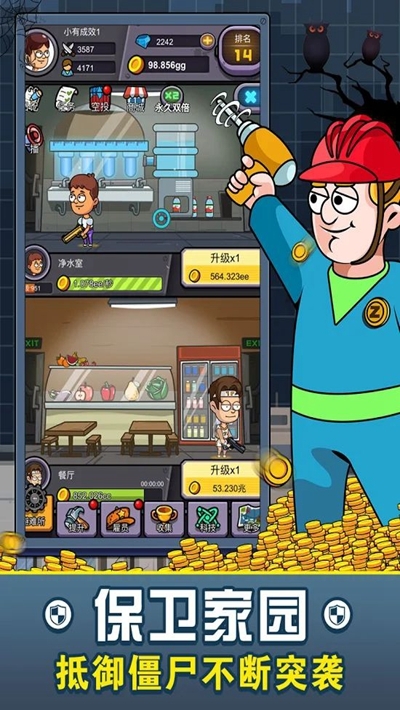 在游戏中,玩家需要经营自己的庇护所,包括建造商店、旅馆等设施,通过合理的资源分配和策略规划来赚取黄金和钻石。游戏提供了丰富多样的建筑选项,从基础的生活设施到高级的防御工事,每一座建筑都能为你的避难所带来独特的增益效果。随着等级的提升,玩家可以解锁更多有趣的配件和装饰,让你的避难所变得更加独特和个性化。