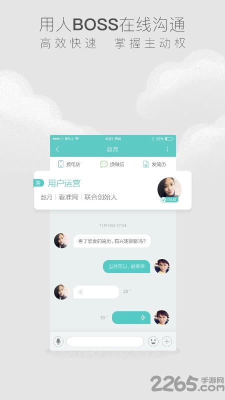 【使用更简单】极简操作界面,5分钟即可完成微简历填写,支持语音、文字、视频等多种沟通方式,让求职像聊天一样简单自然。